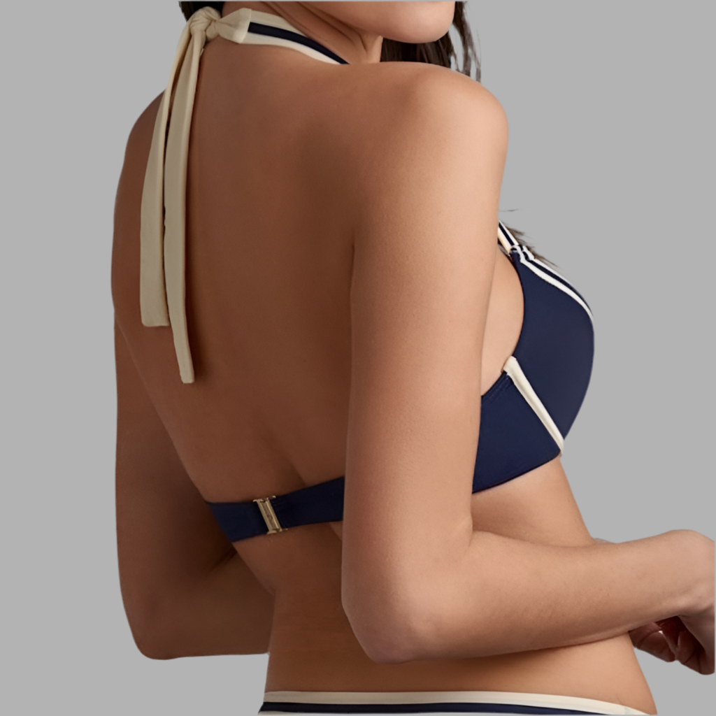 Expertly crafted by Marlies Dekkers, the Sailor Bikini Top in Navy offers a sleek and flattering halter design that will elevate your beach look. With its high-quality construction, this top provides comfortable support and a stylish silhouette, perfect for any swimwear collection.